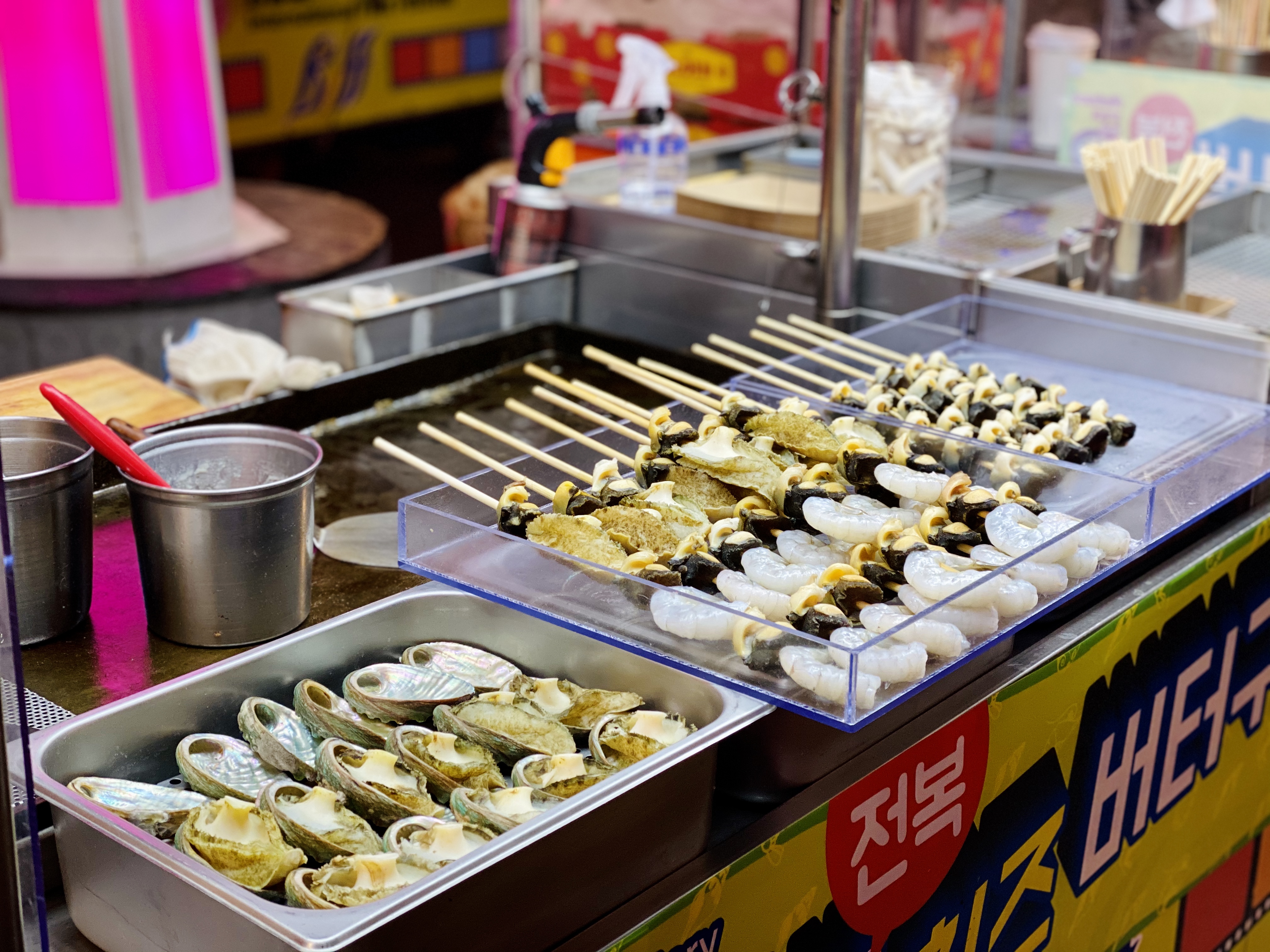 Busan is South Korea’s second largest city. To give you a general sense of Busan’s geography—the city itself is on the south-eastern tip of the country, overlooking Japan’s Fukuoka 210 kilometres away. Busan Airport is to the west of the city, while Jung-gu could be considered the city center with lots of shopping places and street food stalls at night. Busan’s famous beach is in Haeundae-gu, which is to the east of the city and about a 30-minute cab ride from Jung-gu. Shinsegae Centum City, also in Haeundae-gu, is the world’s largest shopping mall complex and is open from 11am to 8pm. Another popular mall would be Lotte Department Store in Jung-gu. You would be able to find everything, from clothes, furniture, and electronics all the way to groceries and proper restaurants and cafés in these two shopping malls.