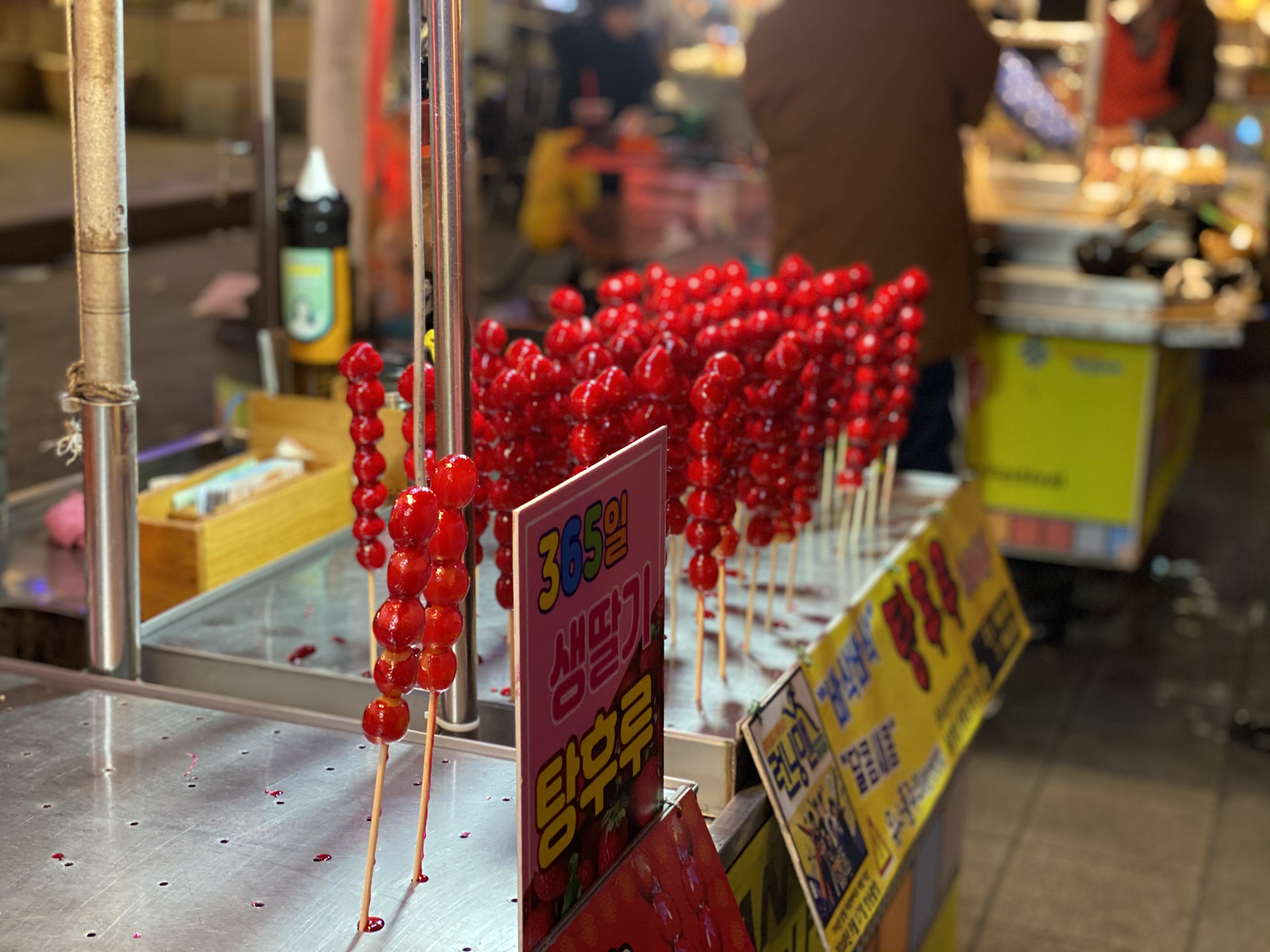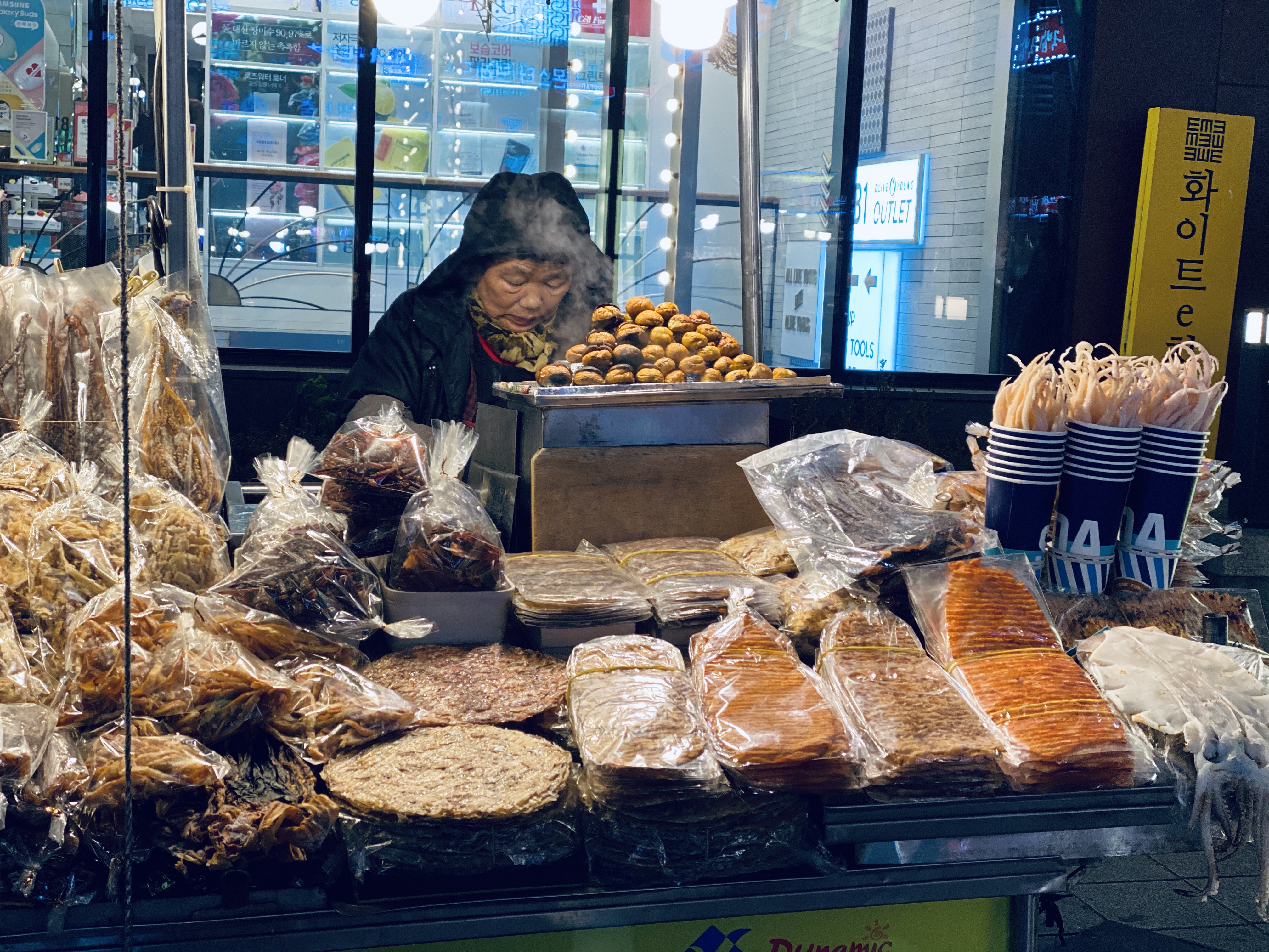 Street food stalls abound around BIFF square in the Nampo-dong area in Jung-gu. They were especially enticing given the cold outside. We tried a non-spicy dak bulgogi (marinated chicken) skewer and it was pretty good, but nothing wow.