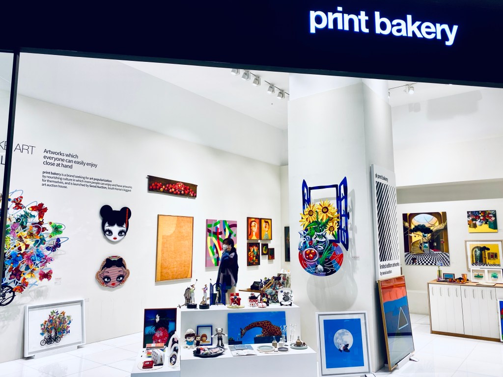 print bakery was also located in Shinsegae Centum City. It was created by Seoul Auction in 2015 and sells art pieces, mainly contemporary, from well-known and up-and-coming artists. Each piece of work is unique or at least very limited in number, and print bakery works with these artists to provide those items featured in the shop at a huge bargain (relative to the artists’ other pieces) to the public (hence the name “bakery”—where customers could visit and buy art like they would bread).