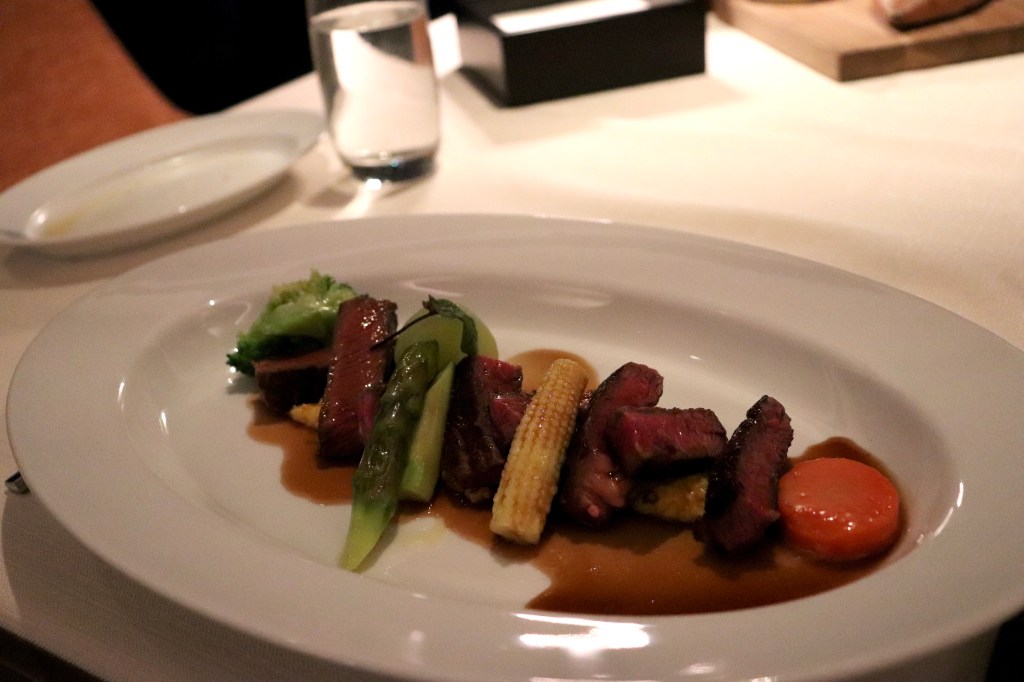 The morel glaze was a delight, but the steak itself was a pretty lean cut that lacked both char and the flavors of a premium cut of rib-eye. The bed of sweet corn purée was a nice try.