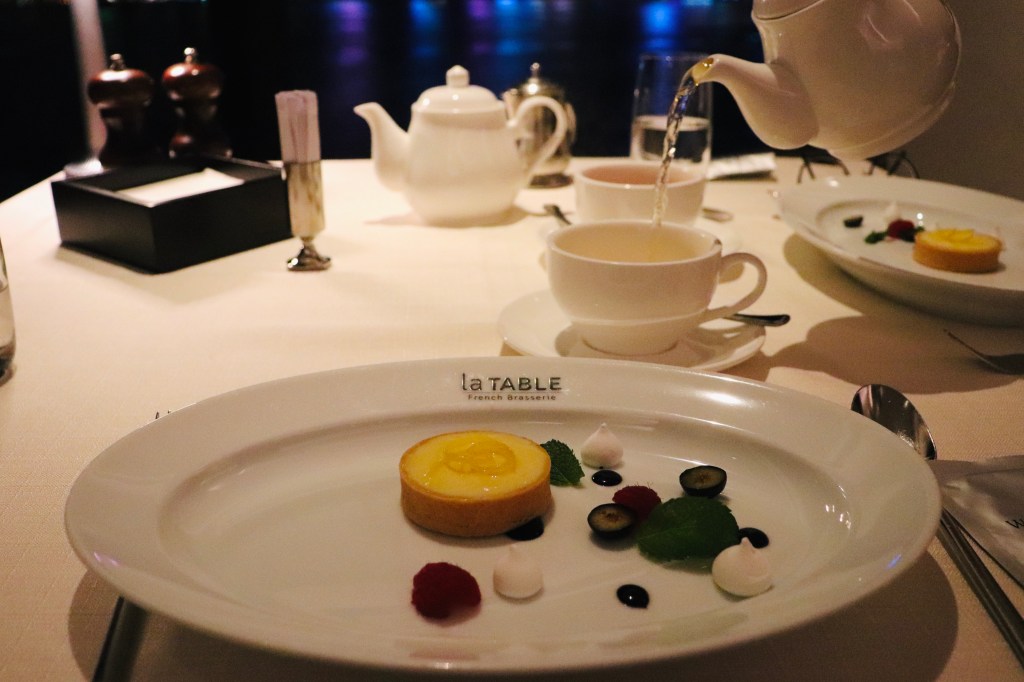 La Table Brasserie is a hotel restaurant with a fairly good reputation for its location and pricing: warm hospitality, consistent food, fabulous view, fond memories of special-day meals, etc. In fact, many customers remember the place and return. The restaurant is also warmly received by visiting foreigners. Despite the endless disappointments trying out restaurants specialized in various western cuisines on the other side of the island, I felt I needed to check this place out. The verdict? Well, for a $1688 two-person dinner set (and a 20% discount for payments via HSBC credit cards), I would say the restaurant fell just a little short of my high expectations given the general consensus. That said, the greatest part was the ample privacy that almost every table had access to, and tables by the window come with a sofa and separate wall. And everything else was solid: food presentation was deliberate, the full floor-to-ceiling windows were a treat, staff were earnest and amicable, the timing of each course was excellent and the dishes were generally delectable. The only trouble was a lack of a wow factor and any kind of indication that we were having French cuisine. The flavor profile of each dish was made to be so general that it reminded me of Landmark Café, a restaurant specializing in offering a generic menu that is a blend of East and West. But it all comes down to expectations. If you are looking for ample privacy, a splendid location for a business meeting or to spend a quiet evening with a loved one(s), and you are a fan of western food in general, this might just be the place.