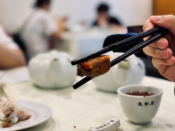 The morning catching up, small plates sharing and tea drinking ritual of yum cha is part of Hong Kong’s culture and identity. Back in the 80s and early 90s, old ladies would circle around buzzing dining rooms with pushcarts and shout out for attention. While dim sum carts are increasingly hard to spot in Hong Kong, even more so is an ad hoc seating system where diners waiting to be seated have to eyeball finishing tables and grab them once they’re vacated. This is the case at one of Hong Kong’s oldest dim sum establishments: Lin Heung Kui. During peak hours, you’d have to fight for a seat. If you are unlucky and fail to gauge timing, someone who arrives later might even sit and eat before you do. My strategy was to politely check with diners who seem to be finishing and then standing by, which worked as quite a few were friendly enough and accustomed to the system. Alternatively, a separate room opens up at 12 in the rear of the restaurant where tables are clothed and you won’t have to sit with strangers. That room would be much quieter but a 10% service fee is charged. Pushcarts would still come in so not to worry about missing out on the experience.