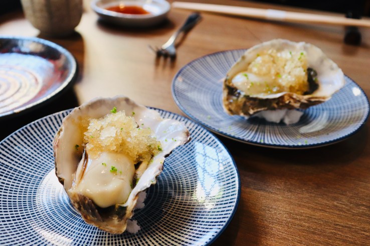 Today’s oysters were bright colored with edges slightly dark. Mine was rich and plump with a strong aroma and sweet aftertaste. It went just slightly fishy near the end, otherwise perfect.