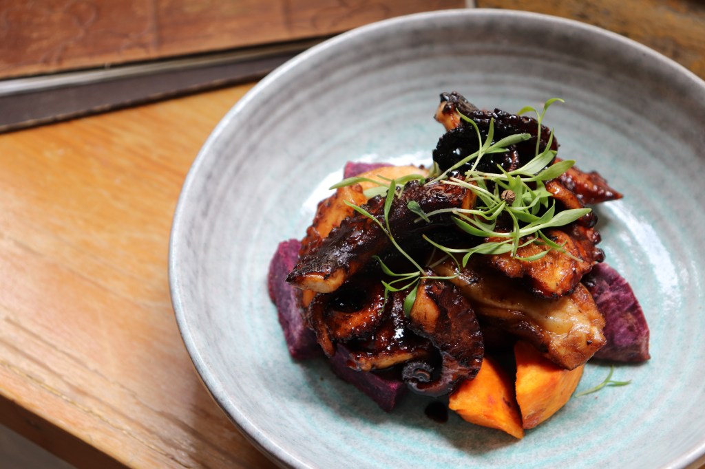 Pan fried octopus with sweet potatoes and homemade teriyaki sauce, $135