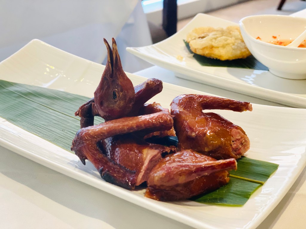 乳鴿看似二十多天的大小,煙燻的一絲絲香味撲鼻而來。這道菜一般用茶葉生米砂糖等燻製後還要小心倒幾勺熱油上乳鴿的外皮,達到外面酥脆之餘皮內的鴿肉不會過熟。這隻乳鴿茶香稍弱,鴿肉入口的感覺偏油膩煎炸,但勝在肉質細嫩,贏在食材上,整體還不錯。如果可以加上什麼配搭一起吃,例如煙燻的其他材料,效果可能更特別。