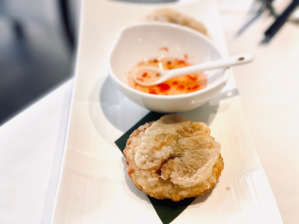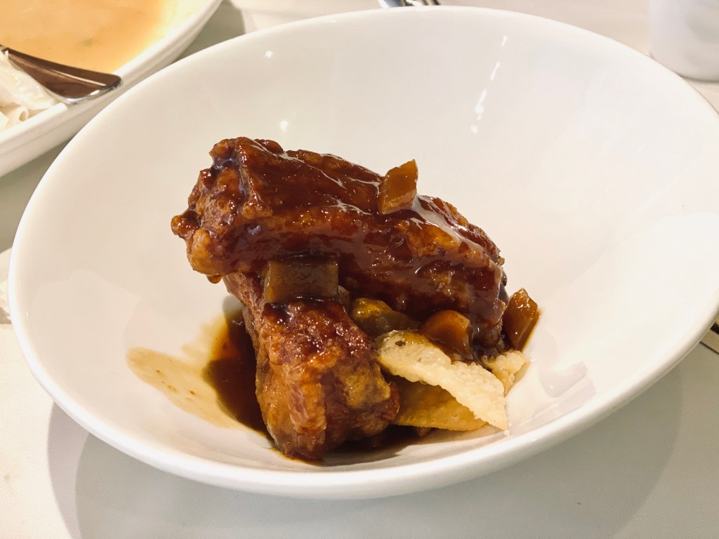 話雖如此,對於這次的午飯體驗我是相對滿意的,嚐到廚師用心的搭配,午飯套餐每位$788+10%,一共十道菜。大部分菜式正常,不過不失,偶爾有幾道不錯的,例如雞油花雕蒸大花蟹配陳村粉、龍井菊花煙燻乳鴿、以及慢煮乾蔥煀滑雞。只是對於注意健康的人,這裏大概不太適合,幾乎每道菜都重油或有炸物。大班樓可能比較適合帶朋友來一次或商務請客:足夠體面之餘也有少許特色。