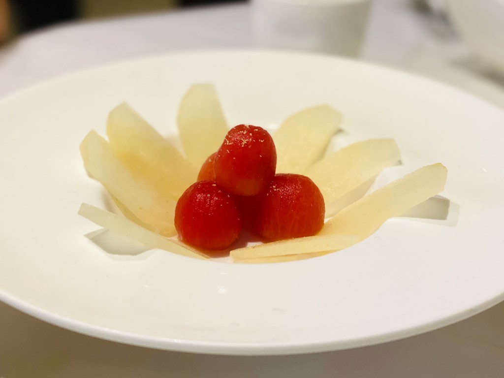 看標題,這隻雞應該是控制在低溫小火下煀煮至水分蒸發的,前期稍微煮得過熟都會影響雞肉的口感。師傅雞肉處理得很乾淨,火候及時間也控制得很好,雞肉既香又嫩,慢煮的紅蔥已經充分焦糖化,將醬汁變得甜美濃香,一起放入口層次及味道分明,真的相當有水準。(如果用上日本佐賀縣的三瀨雞應該可以滿分!)