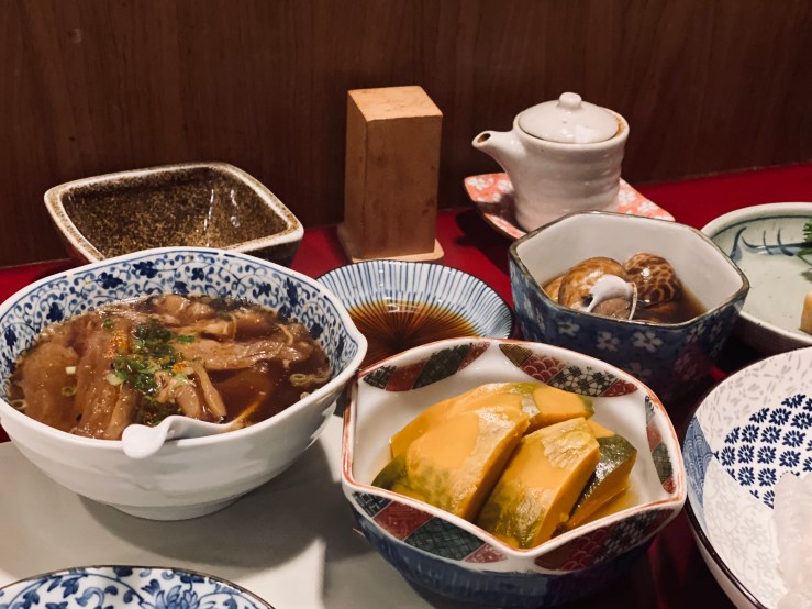 Simmered beef tendon ($65) / Simmered pumpkin ($50)