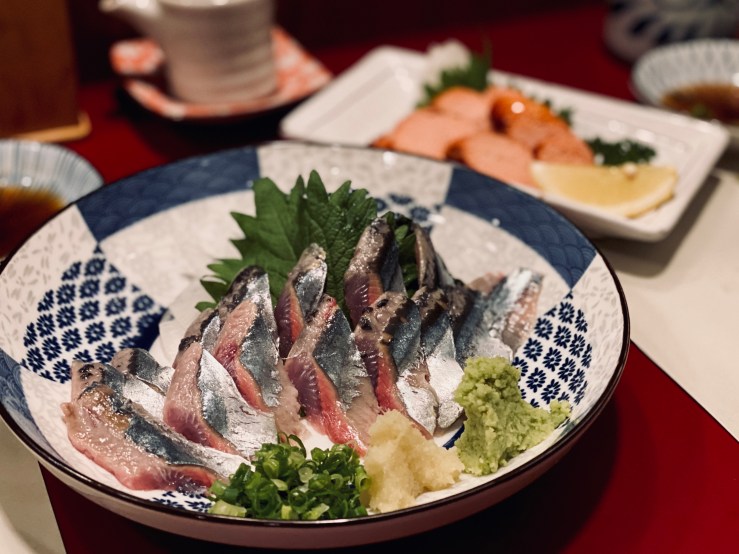 Pacific Saury sashimi (~$200) / Grilled Mentaiko ($60)