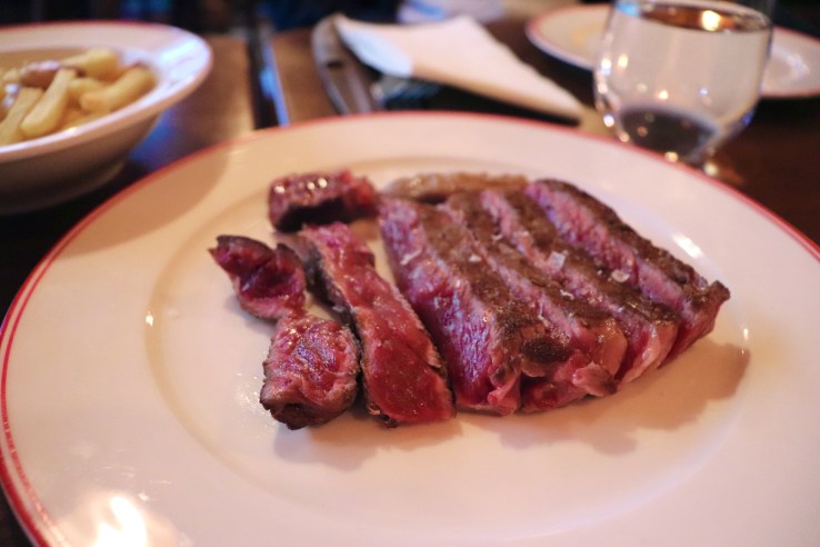 The steak came with lettuce, smoked piquillo peppers confit and triple-cooked Agria potatoes (apparently hand cut and cooked in extra virgin olive oil). I’m not an expert in potatoes so I really cannot tell between different types of potatoes, but I can testify that these fries are just very good (and the fried garlic was also tasty). Yet what I loved even more was the sweet pepper confit that paired so well with the steak and everything else.