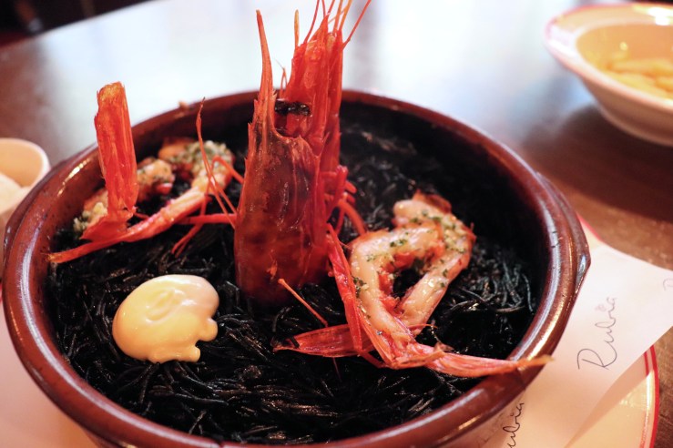 Black fideos, Spanish red king prawns (main course), all i oli, $350