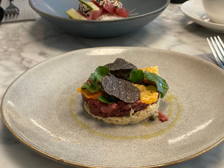 This was memorably good. Truffle was there more than to impress, as it really lent some depth to the flavors of the tartare. The tartare also had celeriac and watercress to balance and some parmesan for extra richness. I can’t be certain about the magic ratio of shallots and mustard and herbs and various other condiments here, but we order steak tartare everywhere we go, even in France, and this was one of the best versions.