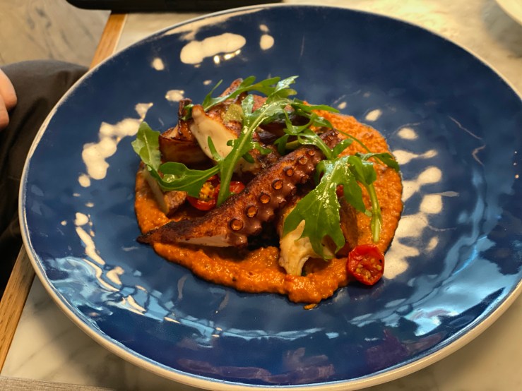 The menu is pretty compact, but still enough to cater to a wide range of dietary preferences. While many of the “main courses” were ostensibly rooted in British and American style cooking, there were a good many dishes and starters that were more globally inspired. We went on two consecutive weekends and tried a few of them, our favorite being the grilled Spanish octopus, but everything else was faultless, quite original and very delicious.