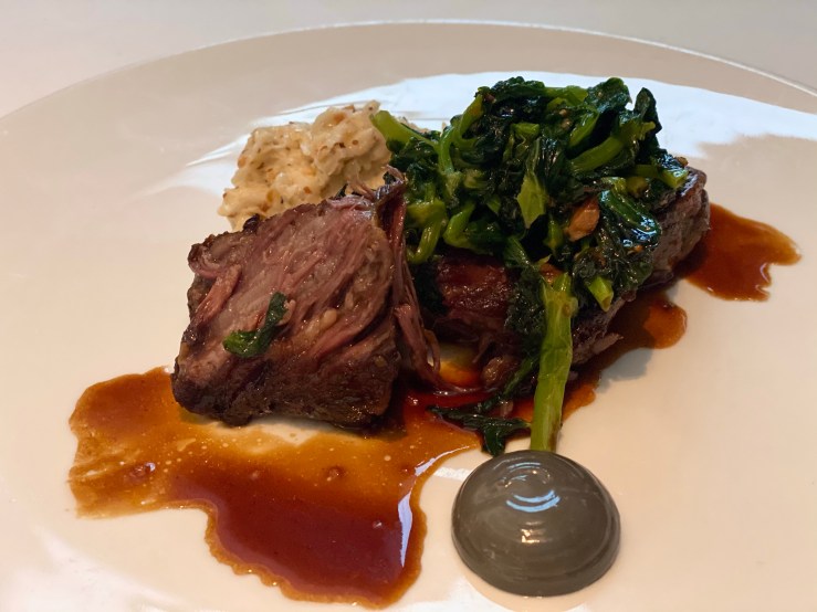Braised wagyu short rib with celeriac, pea shoots, black garlic, onion jus, $508