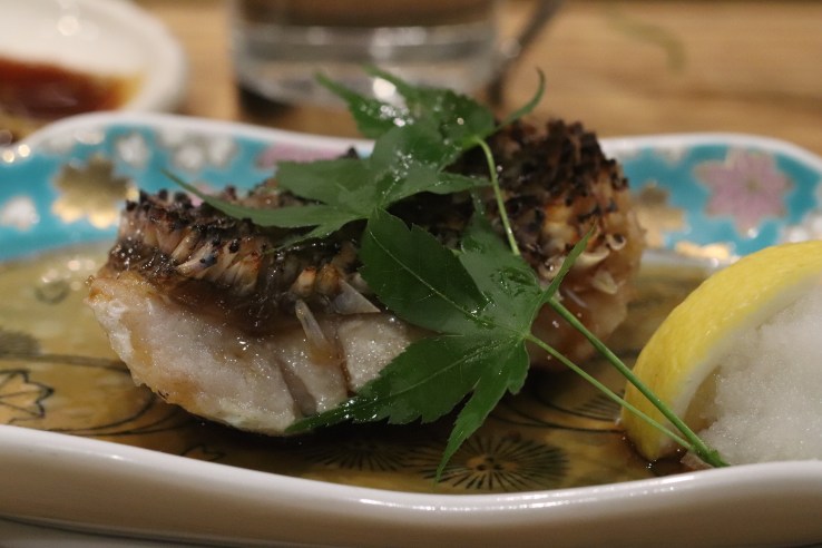 Next up for me was grilled sea bream. This was grilled on teppan with its scales still on the skin. The scales are oiled and grilled at such a temperature and speed that it becomes super crunchy and edible. Clean fish scales are actually very nutritious, and they was certainly tastier than chips. It was my first time having fish scales prepared this way. It’s certainly going to be messy replicating this technique at home.
