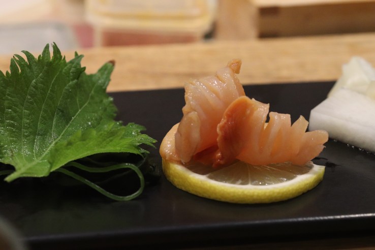 Ankimo あん肝 was an excellent fifth dish to have after the delicate, the buttery, the umami and the crispy bites. It was prepared in its standard way (with ponzu and momiji oroshi) and tasted just as fresh and nutty as anywhere else.