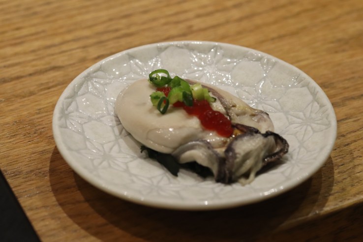 Oyster came from Hyogo and was poached in hot water for 15 seconds so it was slightly cooked. The topping that comes with it is beetroot. Unfortunately this was quite pungent and fishy.
