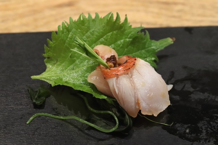 Red snapper 金目鯛 was better. With the skin part-seared the entire room smells good. There is a good balance of buttery and delicate with a lot of sweetness and umami.