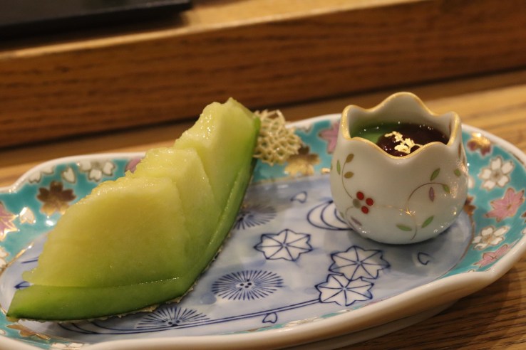 Dessert was fresh melon and matcha red bean panna cotta. Both were top.