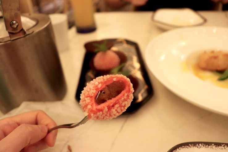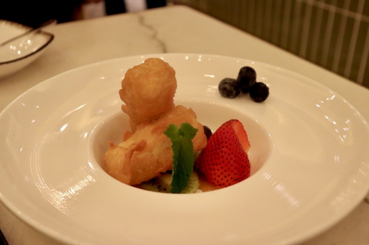 The “tofu” wasn’t really tofu, and was again very chewy and mochi-like. You could dip the sweet sauce beneath the fruits while serving the fried tofu for a sweeter bite.