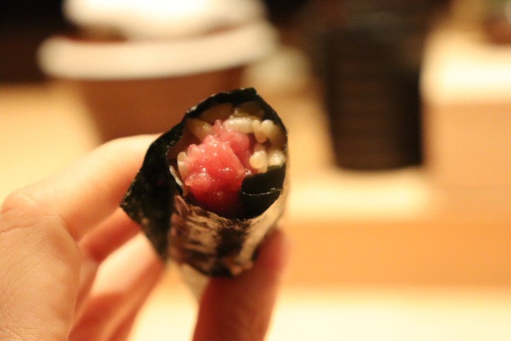 Gladly, our master was a chatty one and delighted to engage, taking care to make sure I understand him with my rusty conversational Japanese and saving us from a potentially cold and serious air of quietude that is all too often considered uneasy by diners everywhere. There was no contempt shown towards photographing or naïve questions about fish and sushi. The engagement and amicability helped to make the dinner feel less like a mechanical delivery of products by the book. He also ventured to make me half-size sushis as per my dietary request. The server was polite and kind throughout.