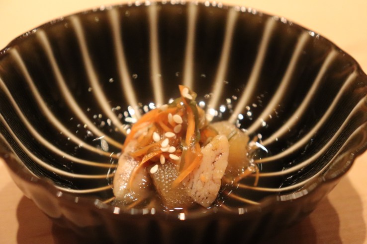 Matsumae zuke was a modest dish of some diced, cooked shellfish and vegetables, light on the palate to get us ready for the next course.