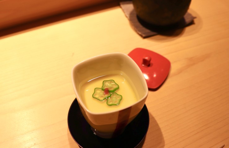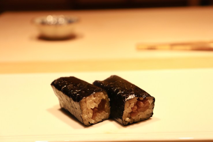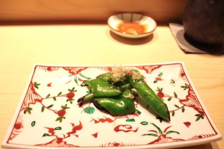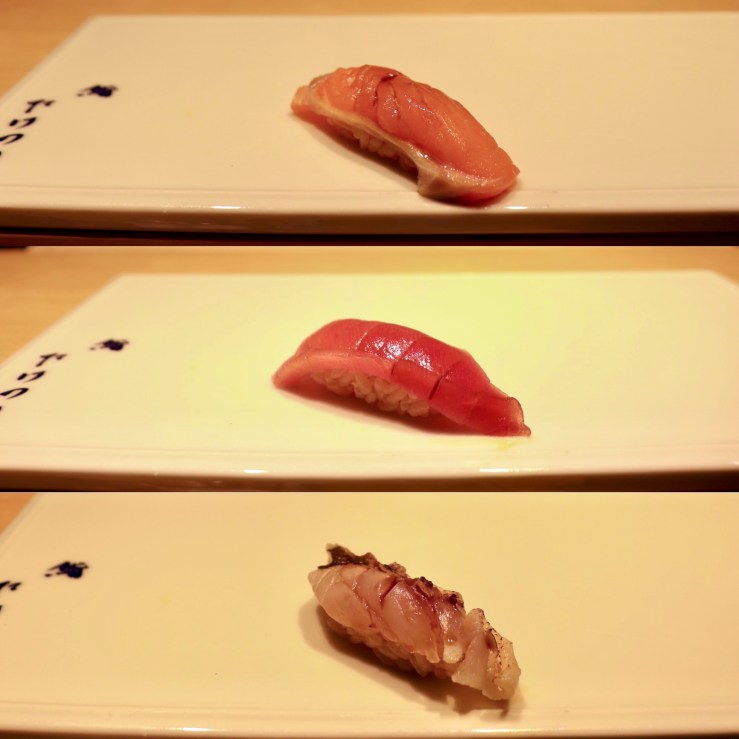 Let’s start with the chef, Takenori-san. We discovered about three courses into our meal that about eight out of ten of his fingernails were encircled in dirt (or some other unseemly black thing), which completely put us off. It is a sushiya, and I thought it was completely disrespectful for a chef to be serving raw food with hands that look unclean. Frankly, it was gross, although I tried to ignore that and focus on my food.