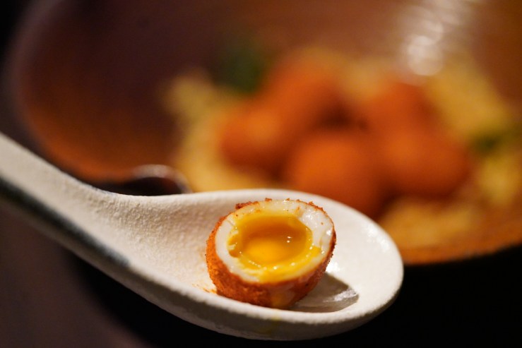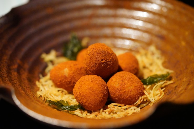 Onsen quail egg / Crispy shredded potatoes, 溏辛鵪鶉蛋, $88