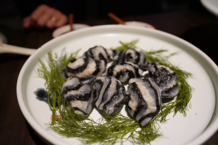 Squid ink dumplings / Pork, 山水墨魚餃 $98