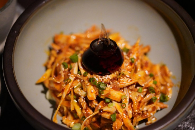 I’m not sure there was much synthesis between the flavors of quail egg and the spices. But the lack of flavor of the quail eggs was somewhat compensated by the crunch from the crispy potato shreds. And I loved that these were small so that I could have lots of them. Still, I rather miss preserved quail eggs with molten yolk in a spicy and sweet sauce 椒麻溏心鵪鶉皮蛋—a most delicious appetizer quite commonly seen in Sichuan and Hunan restaurants in the mainland as of late.